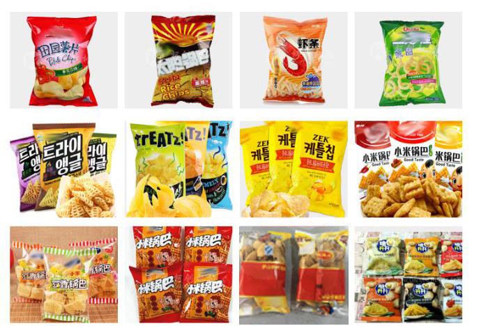 包裝范圍在1000ml 以內(nèi)的產(chǎn)品,適合不規(guī)則,計量精度高及容易碎的散狀物品包裝中,如:膨化食品、蝦條、薯片、香蕉片、蘋果片、鍋巴、餅干、花生、瓜子、糖果等: